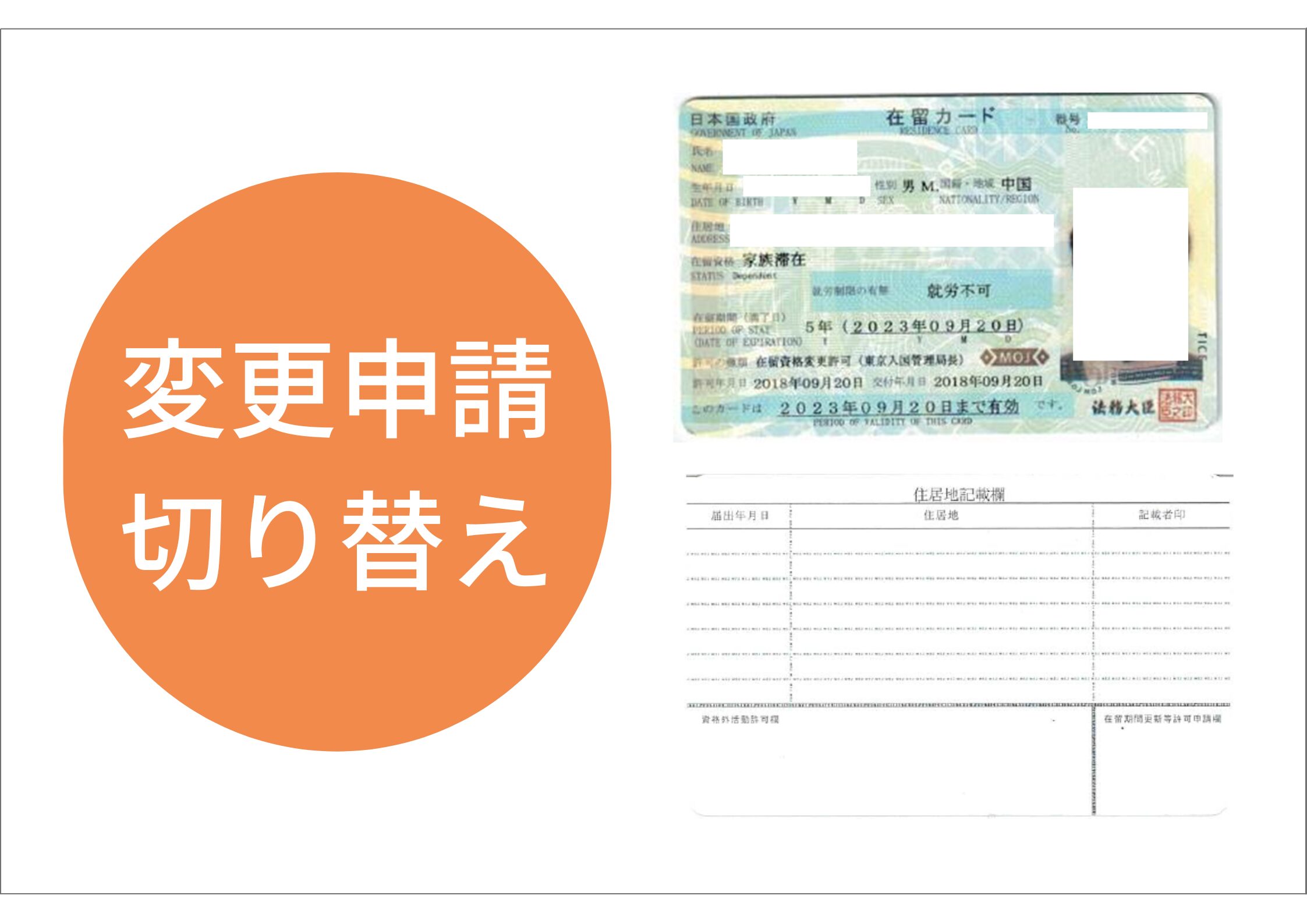 現在持っている他のビザから家族滞在ビザへ切り替える場合に行うのが「在留資格変更許可申請」です。たとえば学生から結婚に伴い家族滞在ビザへ変更したりします。在留資格変更許可申請は岡山県にある出入国在留管理局へ申請書類を提出してから2週間~1ヶ月の審査期間がかかります。許可ハガキが届いたら、岡山県を管轄する出入国在留管理局で新しい在留カードを受け取ることができます。
