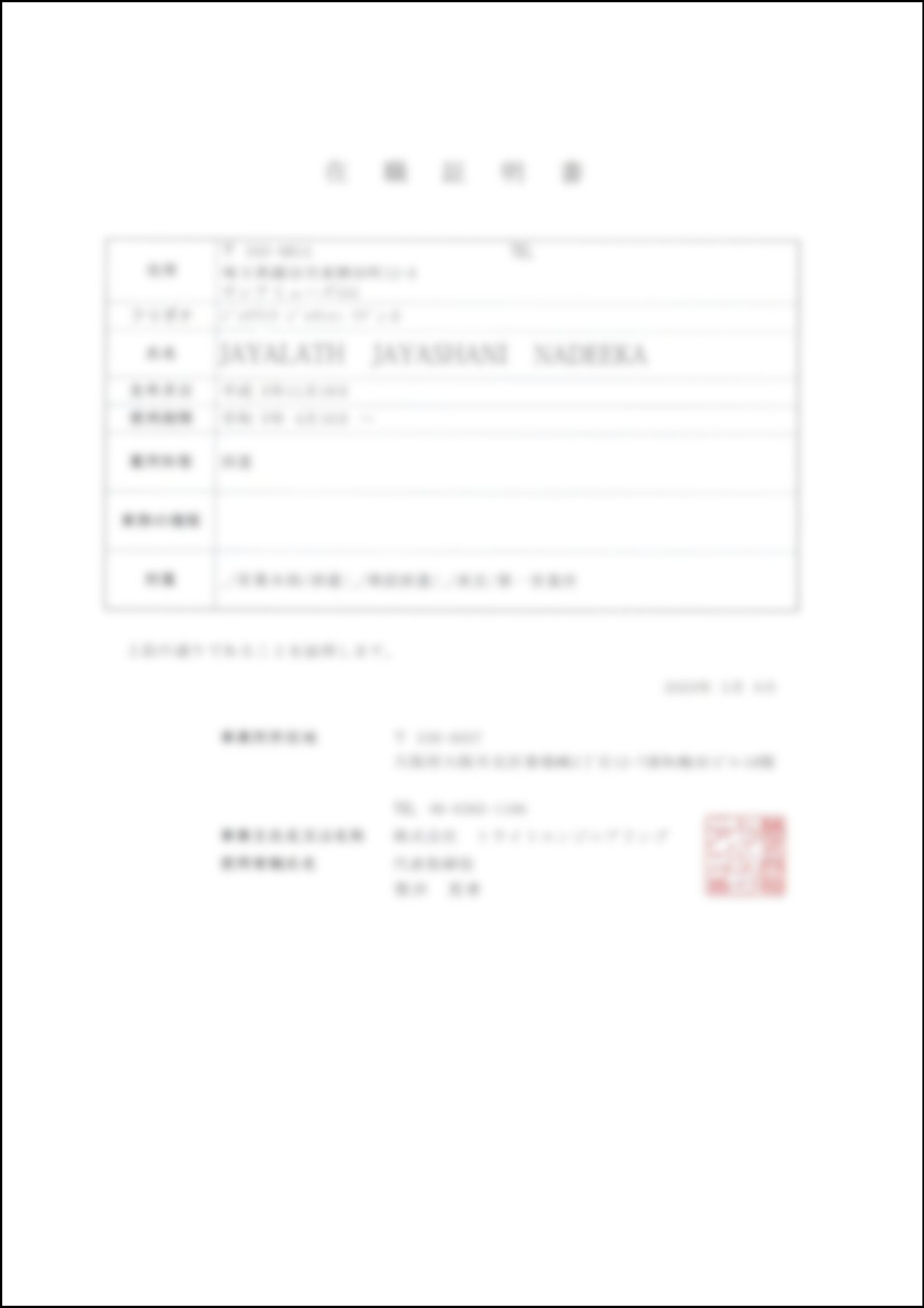 私は日本に来た留学生です。言語があまり上手ではありません。行政書士法人SGXの担当者は全過程で私の家族滞在ビザ問題を優しく丁寧に処理し、在留資格認定書をもらうことに成功しました。とても安心しました。皆さんに伝えたいことは、もしビザの問題に遭遇した時、この会社に相談してください、ということです。彼らは返事が速くて、仕事がまじめで責任感があり、従業員が親切で、とても助けてくれました。家族と再会させてくれてとても感謝します。私も周りの人に推薦します。とても信頼できる会社です。
