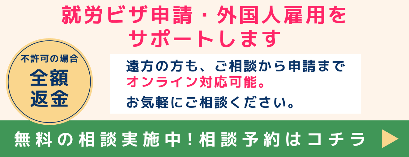 悩む前に、あきらめる前に、当事務所にご相談ください。就労ビザの申請について、疑問点や不明点などございましたら、ご相談は完全無料ですので、まずは一度ご連絡ください。