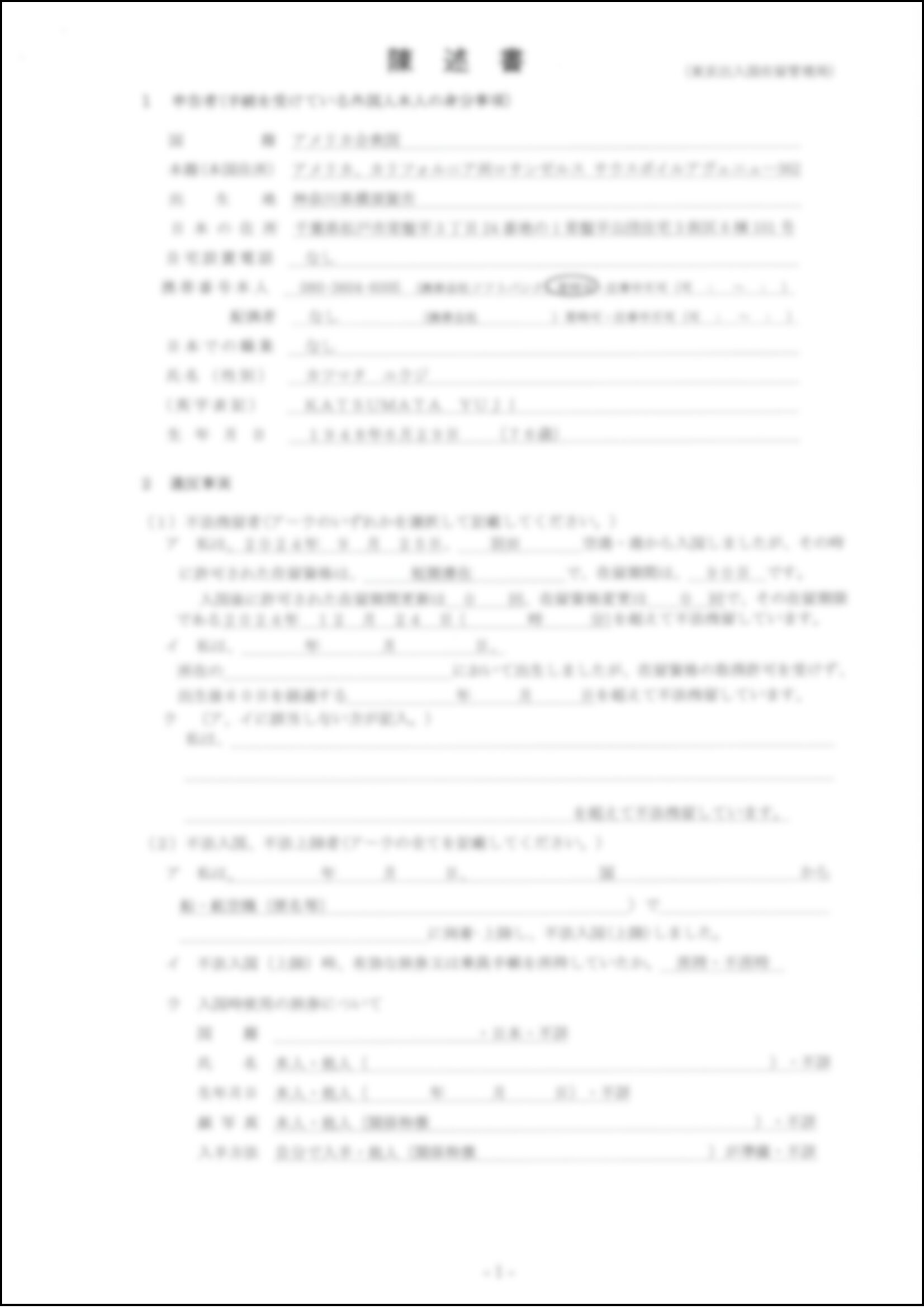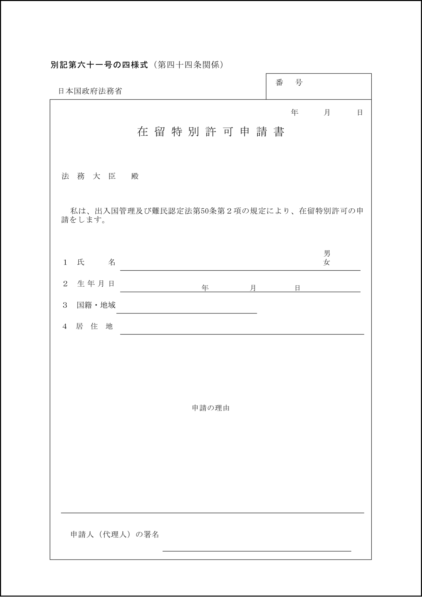 1.在留特別許可申請書