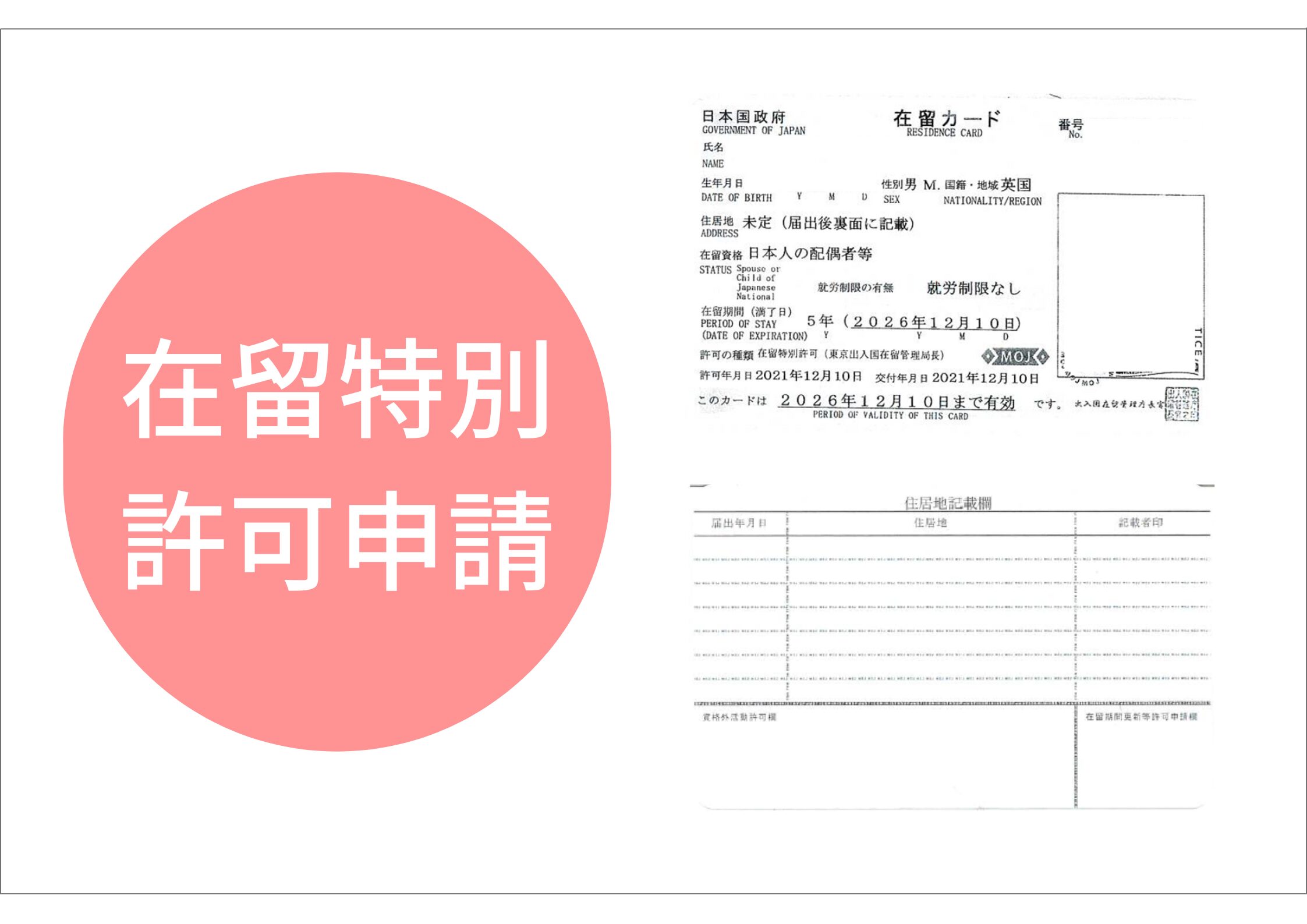 妻の在留特別許可申請でお世話になりました。対応は最初から最後まで大変丁寧でスムーズに進みました。妻との間に子供も生まれて、このまま不法滞在状態ではダメだと思い、思い切って相談させていただきました。どうするのかがよくわからなければ、私たちがそうしたようにまずは相談してみることをおすすめします。この度は、大変お世話になりました。ありがとうございました。◎不法入国から在留特別許可を取得!